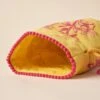 Snapped leather holders for rings and earrings, pockets and organizers for necklaces and treasures, all safely kept in a plush padded jewelry envelope lushly embroidered with a floral motif. Cotton. Exclusive. 11-1/2″L x 7-1/2″W.