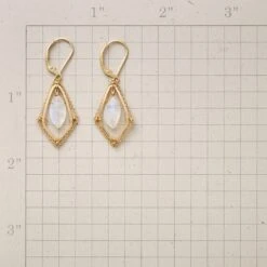 Labradorite circled in 18kt gold vermeil joins drops of garnet, lavender jade, and tinted freshwater pearl in lovely little danglers dancing on sterling silver wires. USA. Exclusive. 1″l.