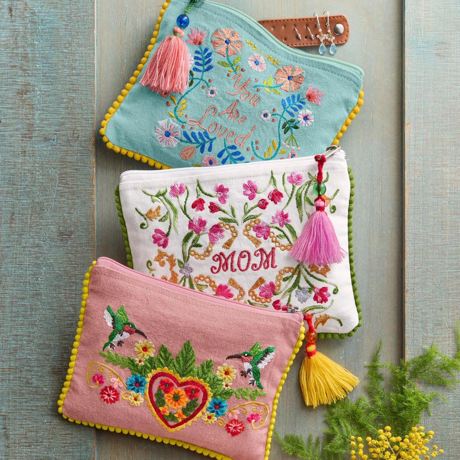 To hold treasures, to present a gift, to let her know she is the best mom ever. Handcrafted with a snapped leather earring and ring keeper inside. Zippered closure. Fully lined. Cotton. Exclusive. 8″W x 6″H.