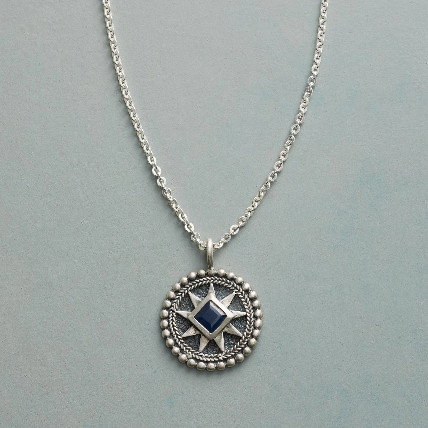 Window-set to let the light shine through, a birthstone sparkles from within a star on a deftly detailed sterling silver pendant. Birthstone necklace with sterling chain and ring clasp. Specify stone when ordering. 18″L.