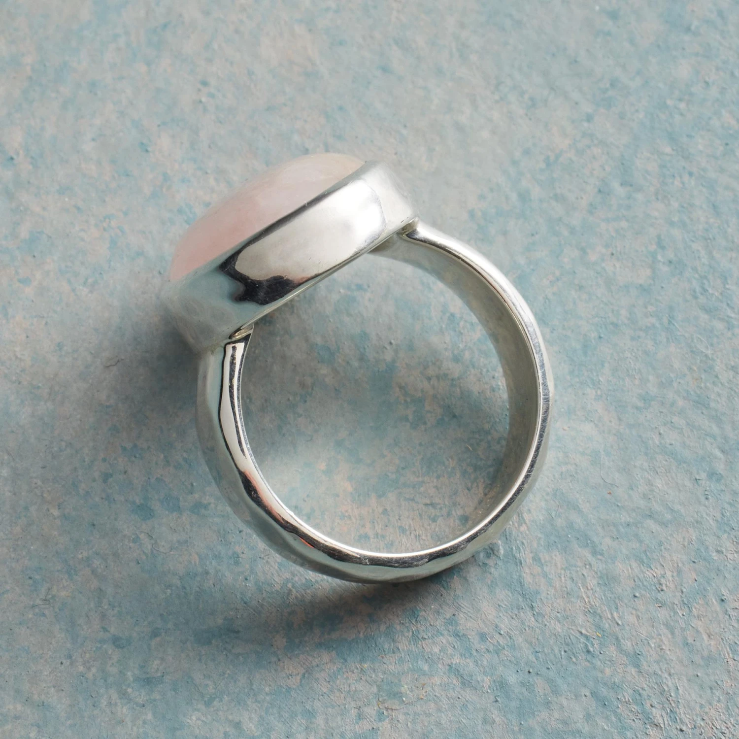 Hammered and polished by hand, sterling silver embraces morganite, its gentle blush a quiet beauty with great depth. Exclusive. Whole sizes 5 to 9.Â