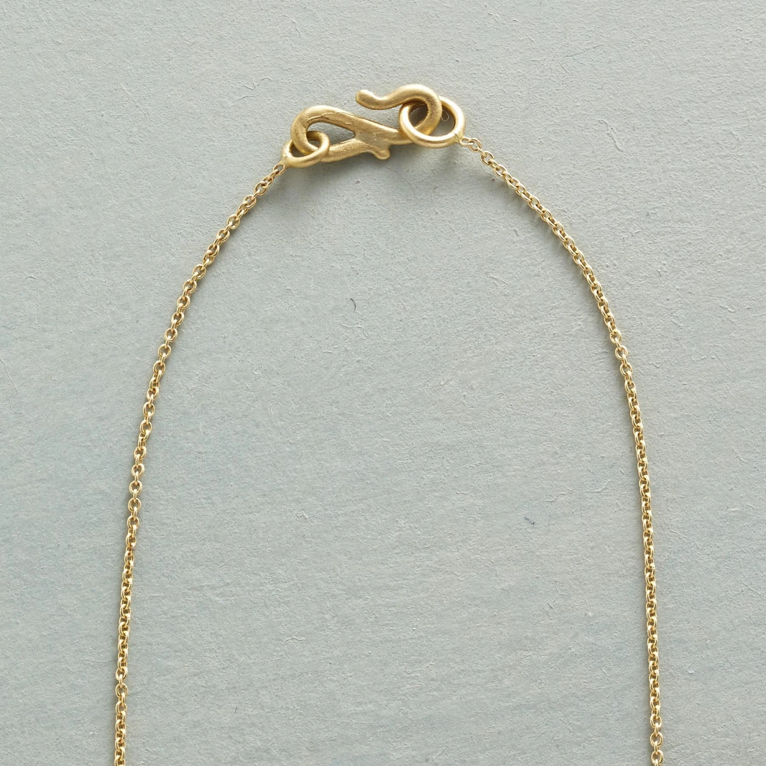 Polly Wales creates simple splendor, scattering rainbow colored sapphires on a disk of matte 18kt yellow gold. Wear it with everything, from jeans to your favorite LBD. 18kt gold chain with handmade S-hook closure. Handcrafted in USA. 17″L. Â