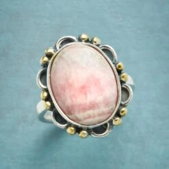 Rhodochrosite’s pink swirls make a deliciously romantic statement, framed by a lacy sterling silver setting punctuated with 14kt gold-plated beads. Handcrafted. Exclusive. Whole sizes 5-9.