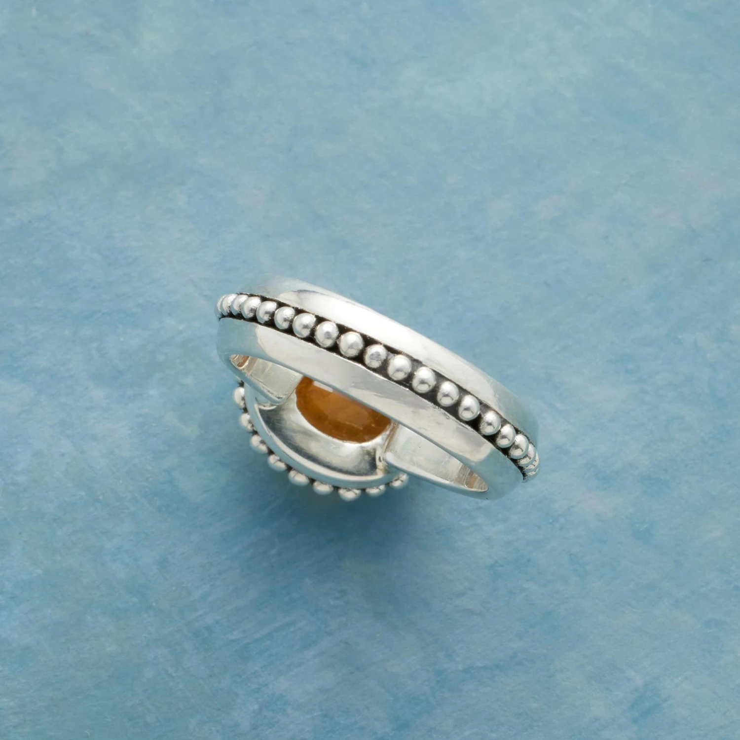 Beaded sterling silver holds honey-hued brandy citrine up to the light, to sparkle and glow with warm radiance. Handcrafted. Exclusive. Whole sizes 6-9.
