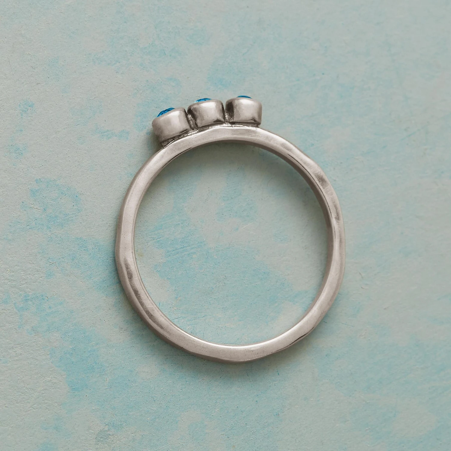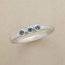 The three stones of this London blue topaz ring promise health, happiness and love. Hand-hammered sterling silver band. Exclusive. Whole sizes 5 to 9.